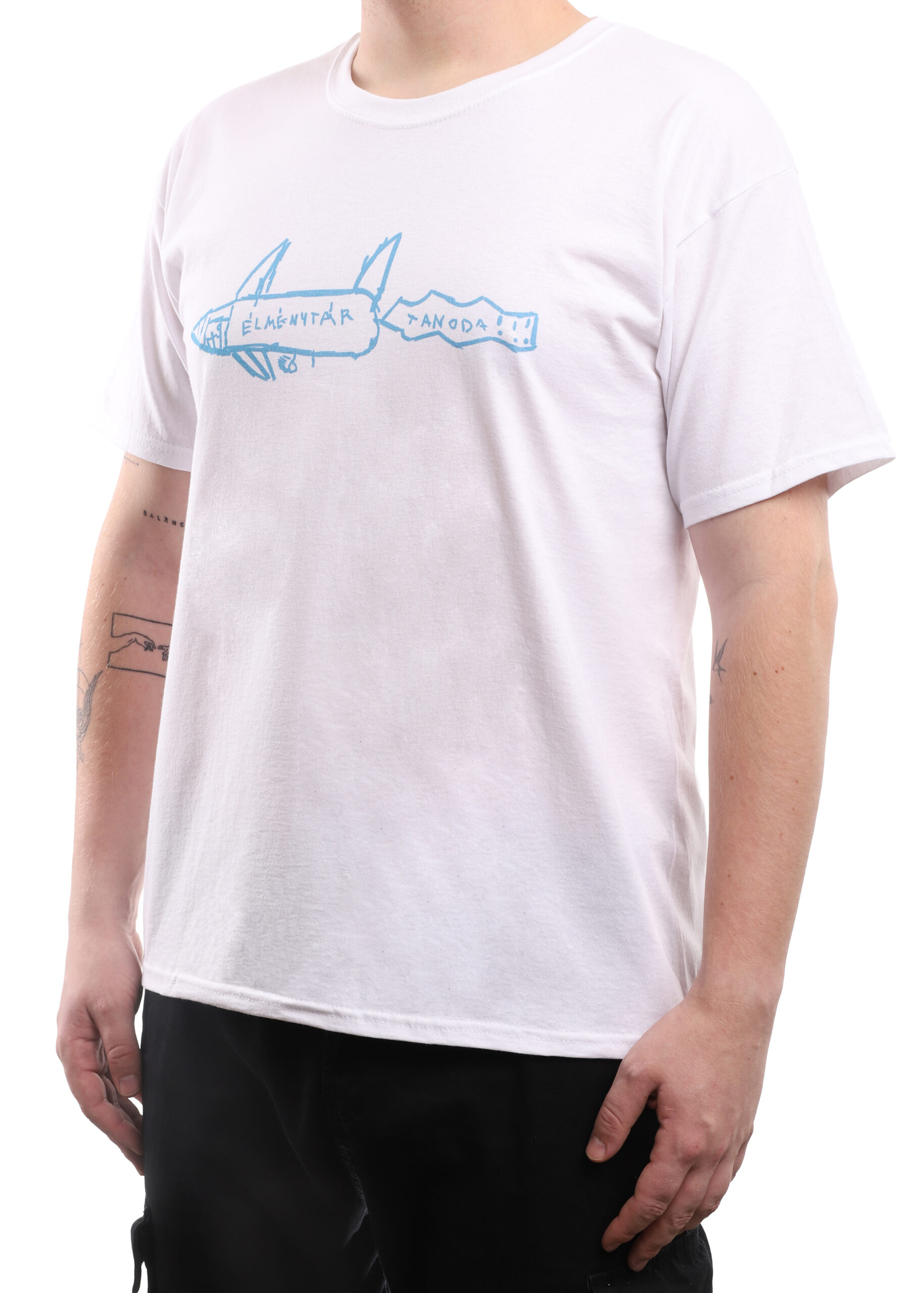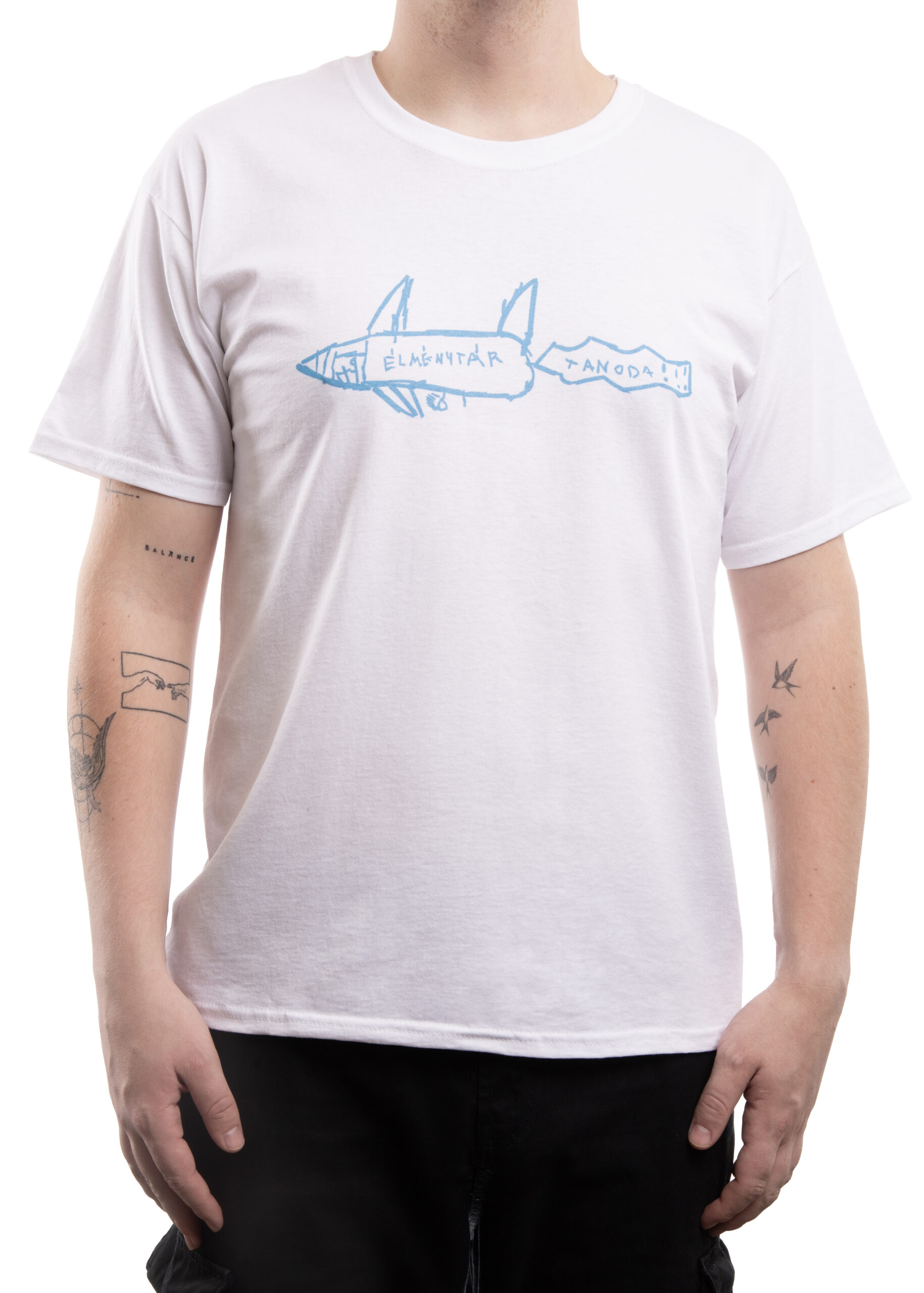 Rakéta póló – fehér póló, fekete minta – férfi
